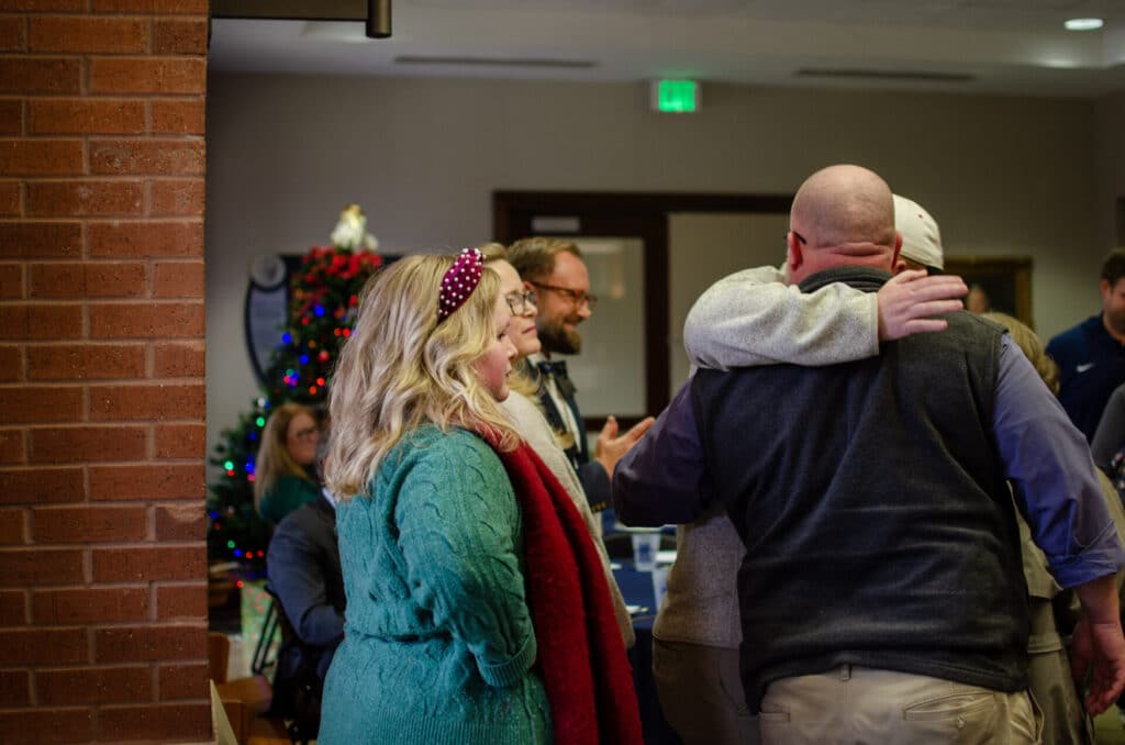 On December 18, 2025, faculty and staff gathered for the annual Christmas luncheon at Mount de Sales. This year was unlike any other, as we introduced the Sister Mary Aquin Mission in Mercy Award to a beloved faculty member. Emily Brown, Upper School Division Head and alumnus from the class of 1994, revealed the first award recipient in a heartfelt speech that brought tears to several in the room. Below are several excerpts from Emily’s speech. Read the full speech here.