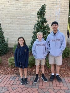 Congratulations to Brenna Tarpley (6th), Liam Frawley (7th), and Skyler Wong (8th) for being recipients of the Sandra Tate Award. Their pictures are displayed in the lobby of Cuddy Hall.